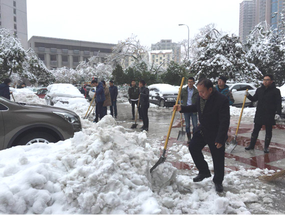 元月5日上午8點,上班伊始,全院干部職工備齊工具,開始清掃路上、綠化樹木上的積雪, 盡管路面濕滑,十分寒冷,但廣大干部職工個個熱情高漲,扛著鐵鍬、拿著竹桿積極投入到除雪保綠行動中。經(jīng)過近3個小時的連續(xù)奮戰(zhàn),及時清掃了單位停車場、附近清流西路段道路兩旁以及綠化樹木上的積雪,并清除被積雪壓斷了的景觀樹干,為周圍居民出行清掃出一條安全通道。