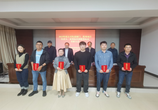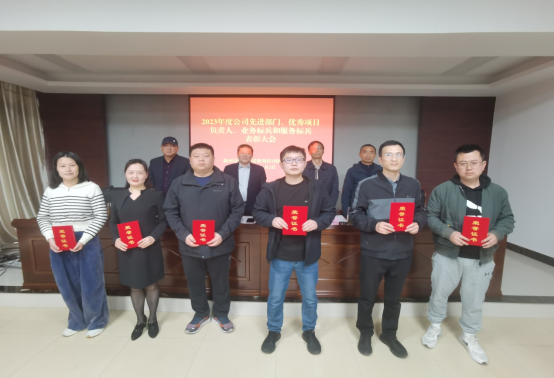 根據(jù)會議議程,公司董事、副總經(jīng)理王士才同志宣讀了《關于表彰2023年度公司先進部門、優(yōu)秀項目負責人、業(yè)務標兵和服務標兵的決定》,公司領導給獲得表彰的先進部門、優(yōu)秀項目負責人、業(yè)務標兵和服務標兵頒發(fā)獎牌和獲獎證書。