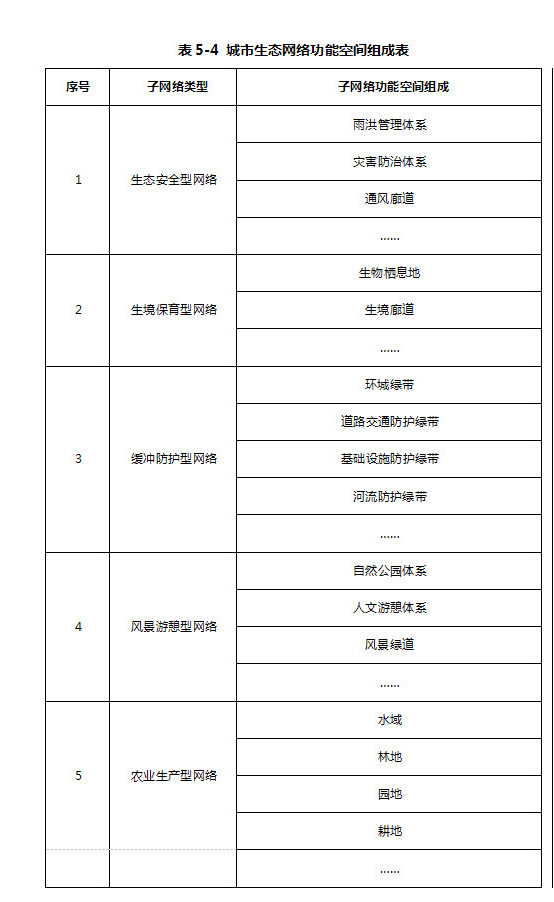 按照生態(tài)網絡功能用途,分別建構生態(tài)安全型網絡、生境保育型網絡、緩沖防護型網絡、風景游憩型網絡以及農業(yè)生產型網絡五種類型的功能性子網絡。(詳見表5-4)