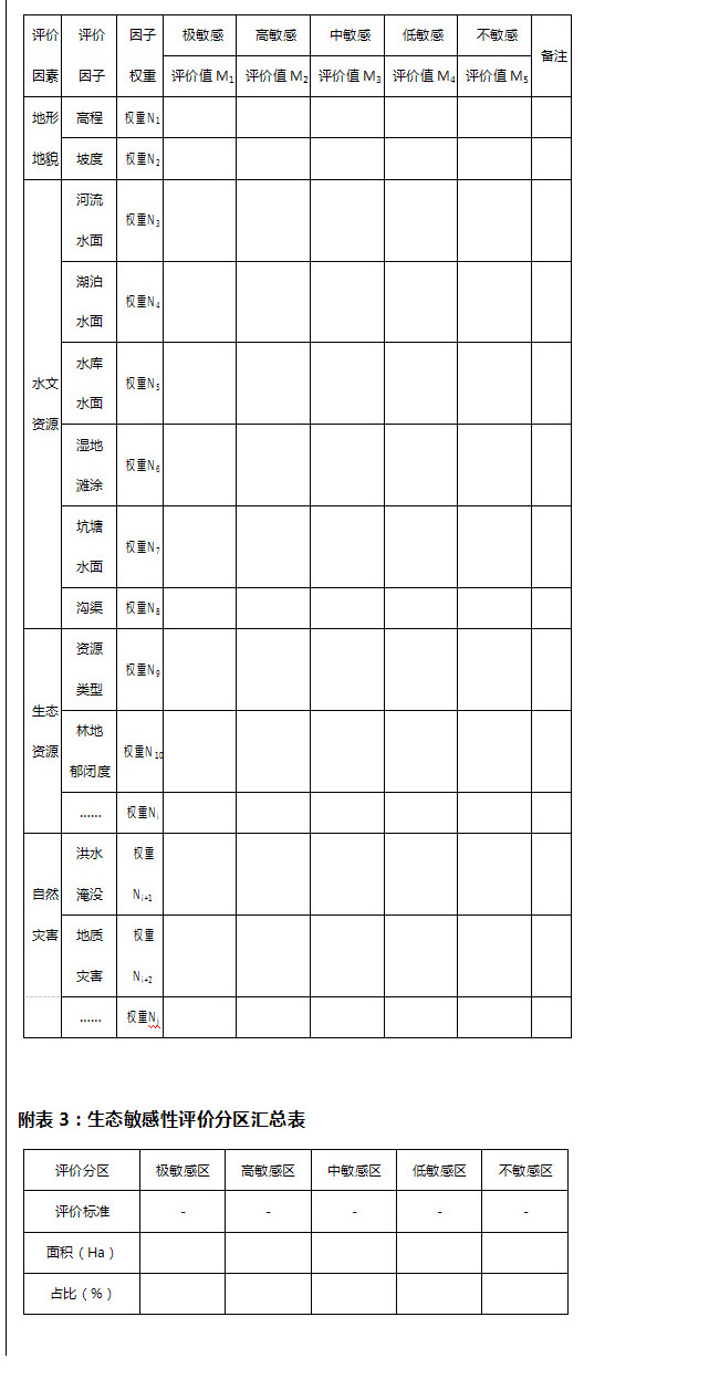 生態(tài)敏感性評價應首先構建評價體系并選取生態(tài)敏感性因子,明確評價模型及方法,確定評價標準并最終明確生態(tài)敏感性的空間分布(詳見附表2)。