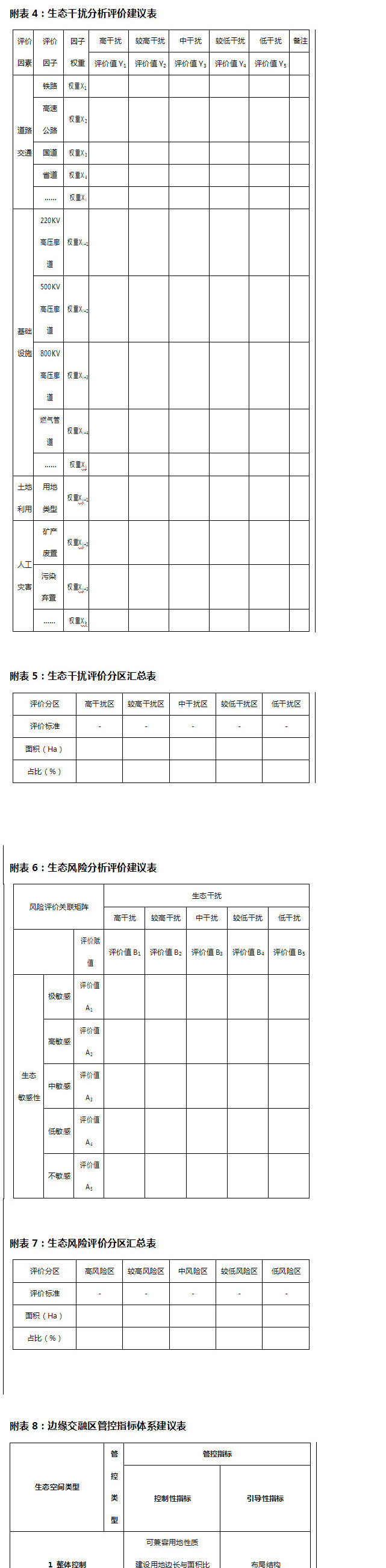 (7)附表包括生態(tài)空間用地分類統(tǒng)計表、管控指標體系表及建設項目庫表等匯總表或統(tǒng)計表。